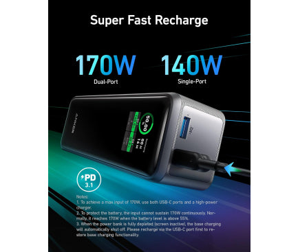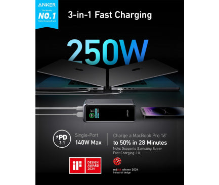 Baterie Externa Anker Prime, 27650mAh, 250W, QC + PD, 1 x USB-A - 2 x USB-C, Neagra