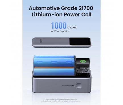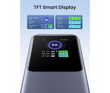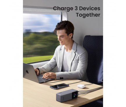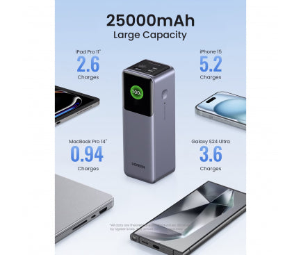 Baterie Externa UGREEN PB722, 25000mAh, 200W, QC + PD, 1 x USB-A - 2 x USB-C, Gri
