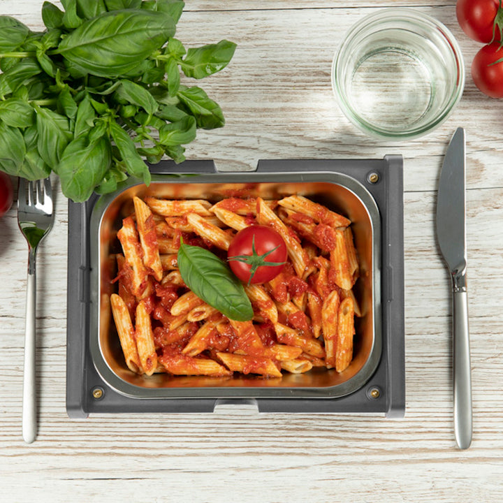Nu ești fan al cuptorului cu microunde și totuși nu vrei să subestimezi ritualul unui prânz cald? HeatsBox PRO încălzește orice tip de mâncare în 15–25 minute, cu un consum minim de energie. Indiferent dacă este supă, sos, legume aburite sau un steak suculent, mâncarea va fi gata rapid. Dacă nu termini tot preparatul imediat, HeatsBox PRO îl va menține cald continuu, pentru a te putea întoarce la el ori de câte ori ți-e foame.