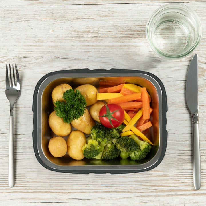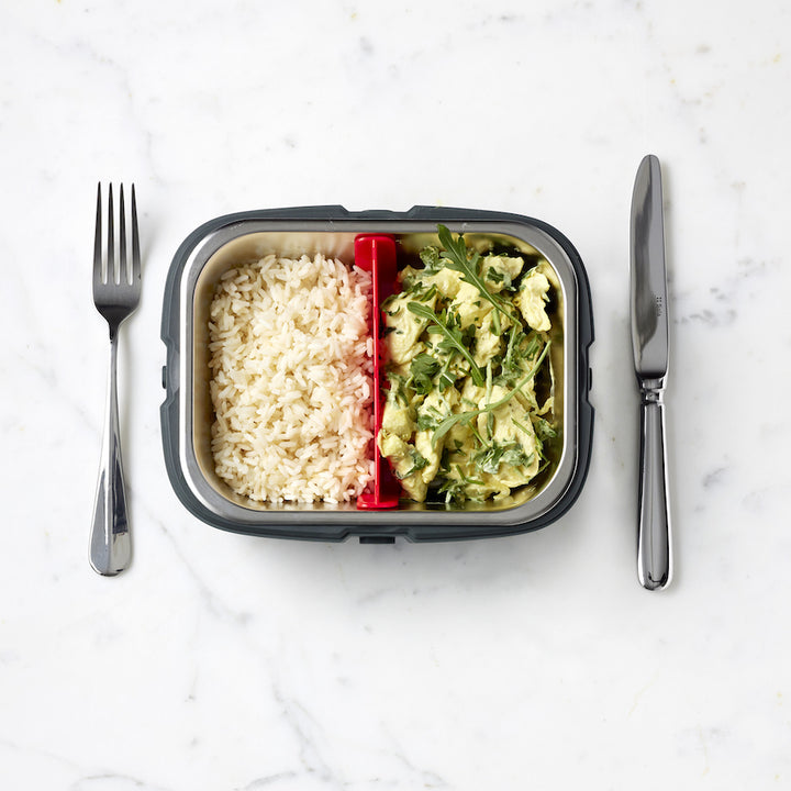 Bolul interior detașabil include un separator, pentru a separa felul principal de garnitură. Poți achiziționa boluri suplimentare pentru a pregăti mese calde pentru o familie mai mare sau pentru o echipă de lucru.