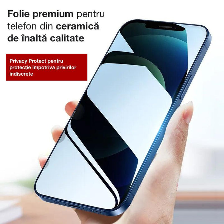Folia premium Privacy Protect pentru telefon este fabricată din ceramică de înaltă calitate, oferind un aspect elegant și durabilitate sporită. Acoperită cu un strat mat pentru a preveni amprentele și a reduce strălucirea, aceasta oferă, de asemenea, protecție împotriva privirilor indiscrete, asigurând confidențialitatea ecranului telefonului.