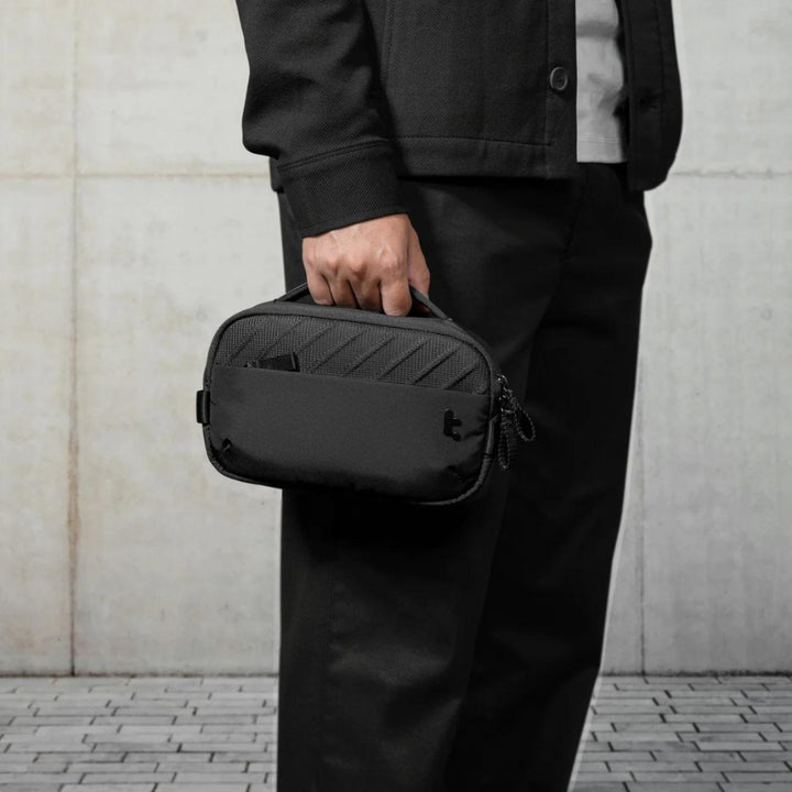Tomtoc te va convinge ca chiar si o gențiță pentru accesorii poate fi elegantă. Întreaga colecție Voyage reflectă măiestria premium și eleganța atemporală. Se caracterizează prin designul liniilor diagonale și utilizarea țesăturilor cu texturi diferite, adăugând un twist interesant schemei monocromatice. Este de asemenea completată perfect de noul logo metalic al brandului pe partea dreaptă. Deși pungă are un aspect destul de formal, nu este plictisitoare. Datorită dimensiunilor sale compacte, poate găsi cu ușurință loc în orice rucsac sau geantă, însă nu putem să nu simțim că ar fi păcat să o ascundem. Arată-o și lasă-i pe ceilalți să știe că ai stil și gust sofisticat!