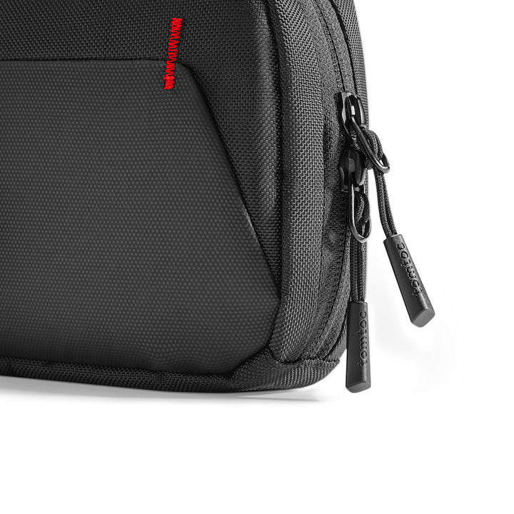 Tomtoc acordă o atenție deosebită calității componentelor. Un exemplu este fermoarul, recunoscut pentru durabilitate și fiabilitate. În acest model, fermoarele au fost modificate pentru a se bloca în timp ce sunt închise, prevenind deschiderea spontană a genții. Dispozitivul tău va fi protejat împotriva scăderilor accidentale ale conținutului.