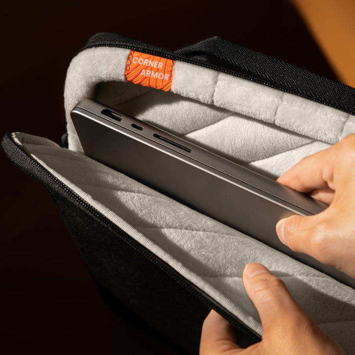 Tomtoc DefenderACE-A03 este o geantă de umăr concepută pentru a oferi protecție completă dispozitivului tău. Datorită spumei cu densitate dublă, amortizează eficient șocurile din toate direcțiile și protejează împotriva căderilor, loviturilor și vibrațiilor. Tehnologia patentată CornerArmor întărește colțurile dispozitivului, cele mai vulnerabile zone în cazul impacturilor. Interiorul căptușit cu catifea moale oferă un culcuș delicat pentru MacBook-ul tău de 13", protejându-l de zgârieturi și oferind un strat suplimentar de apărare.