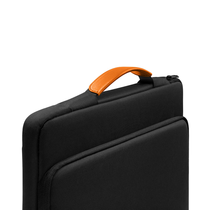 Echipa de dezvoltare Tomtoc creează genți care oferă maximă protecție pentru dispozitivele tale. Colțurile inferioare ale geantii A14 sunt echipate cu întărituri solide care funcționează asemănător cu un airbag la impact. Protecția internă împotriva zgârieturilor este asigurată de căptușeală moale din fleece și margine din fleece în jurul fermoarelor. Carcasa exterioară rezistă la ploaie și asigură că echipamentul tău este în siguranță.