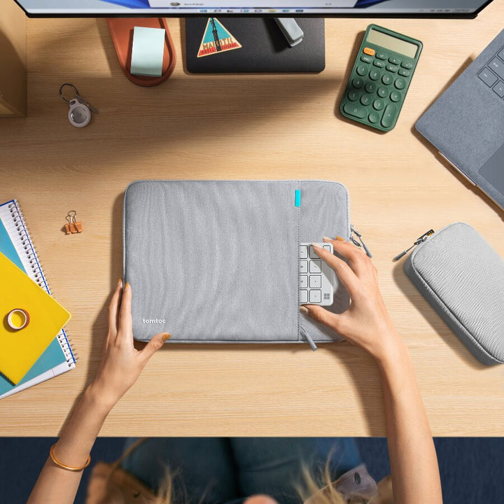 Husă Laptop 13'' MacBook Pro / Air si Geanta Accesorii Tomtoc Sleeve Kit, Gri