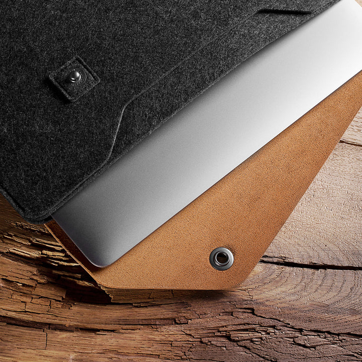 Husa Pentru Laptop Mujjo Sleeve, Material Felt Si Piele, Compatibil MacBook 12 Inch, Bej