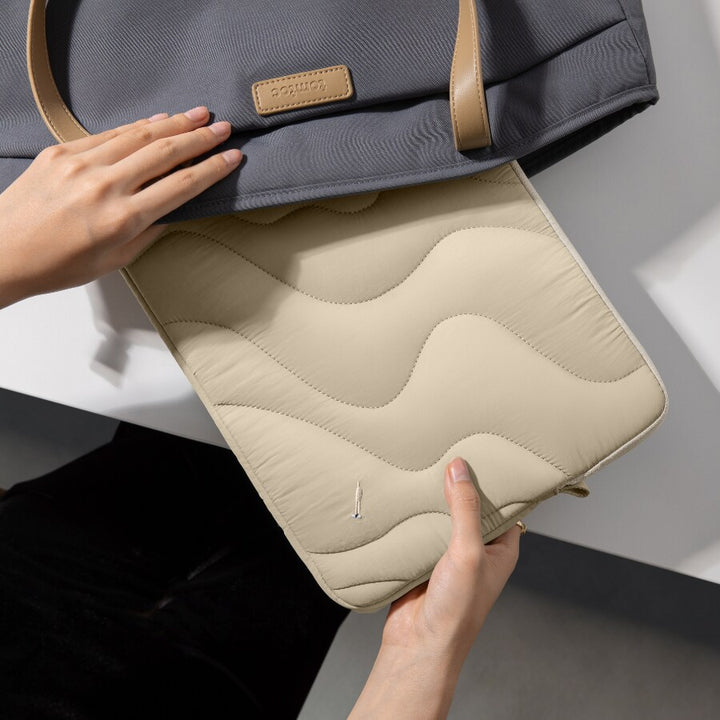 Chiar dacă husa arată ca o pernă pufoasă, interiorul său ascunde caracteristici unice pentru protecție maximă. Tehnologia CornerArmor cu colțuri flexibile absoarbe șocurile și vibrațiile din timpul călătoriilor zilnice. Interiorul este căptușit cu catifea moale, iar fermoarul este protejat la margine pentru a preveni zgârieturile. Materialul superior, rezistent și realizat dintr-un amestec de poliester și bumbac eco-friendly, împiedică pătrunderea apei și protejează laptopul de deteriorări.