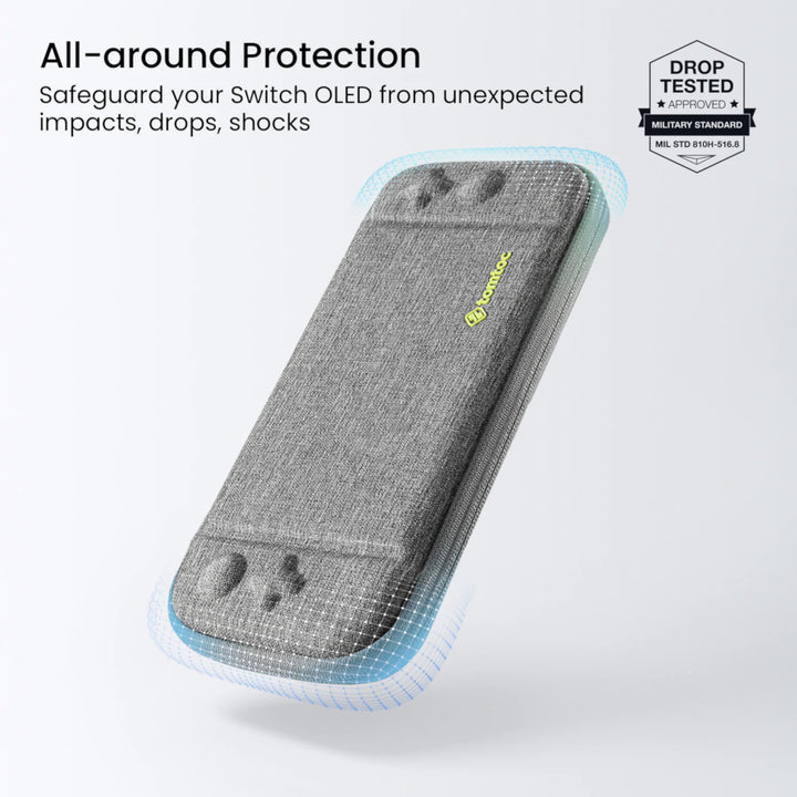 Păstrarea Nintendo Switch OLED protejat în timpul călătoriilor este esențială, motiv pentru care această husă a trecut prin teste stricte de drop test la nivel militar. Husă menține dispozitivul în siguranță și îți permite să te bucuri de consola ta oriunde și oricând.