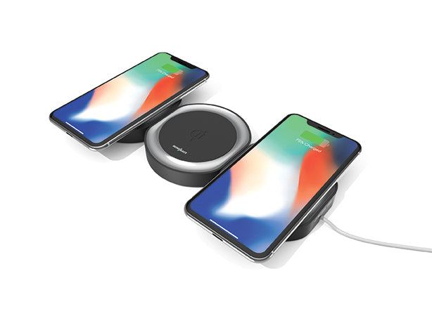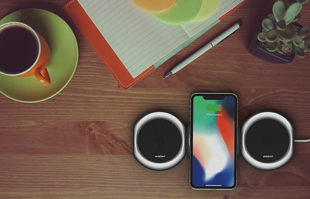 Încărcător Qi Modular poate încărca trei dispozitive simultan. Un încărcător rapid poate gestiona telefoane precum iPhone 8, 8 Plus, iPhone X sau Samsung.