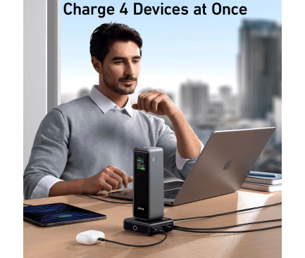 Incarcator Retea Anker pentru baterie externa Prime, 100W, 3A, 1 x Pogo Pin - 1 x USB-C - 2 x USB-A, Negru