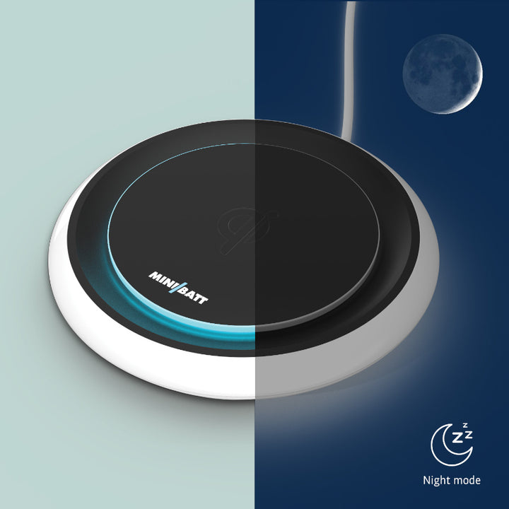 Încărcător Wireless Qi, MiniBatt Fly, 15 W Maxim, Qi 1.2, Încărcare Automată, Iluminare De Fundal Albastră, Alb