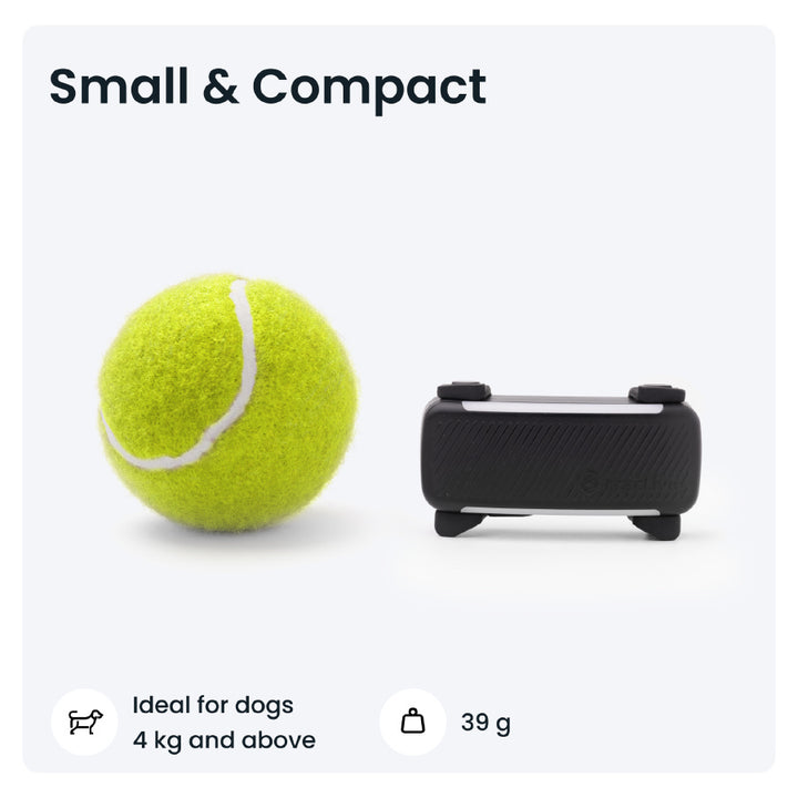 Dispozitivul este 100% impermeabil, rezistent la șocuri și are o baterie cu autonomie de până la 14 zile. Se potrivește cu majoritatea zgărzilor și hamurilor.