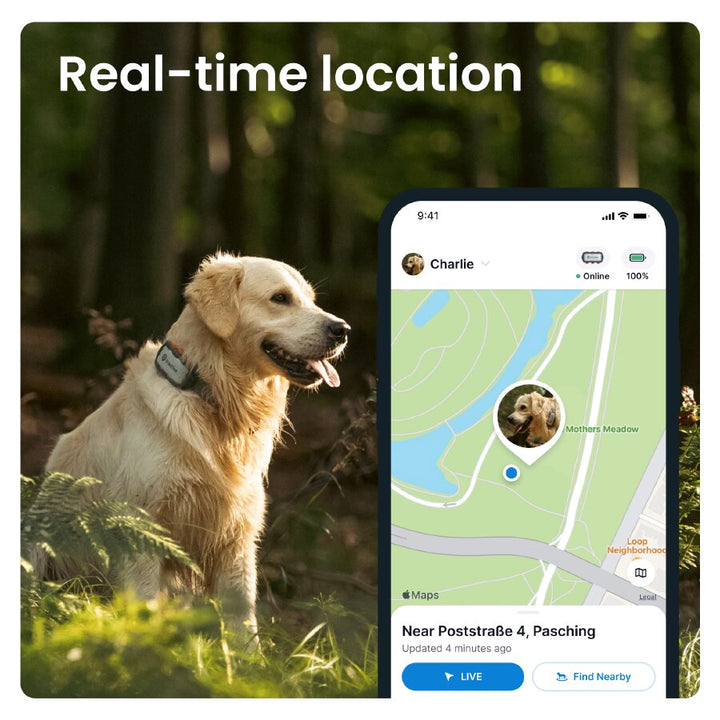 - Monitorizare în timp real (LIVE Tracking) – vezi unde se află câinele tău oricând