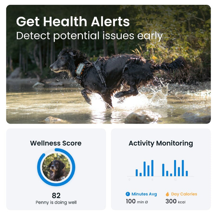 - Monitorizarea activității (Activity Monitoring) – urmărești cât se mișcă câinele, îți stabilești obiective și compari progresul