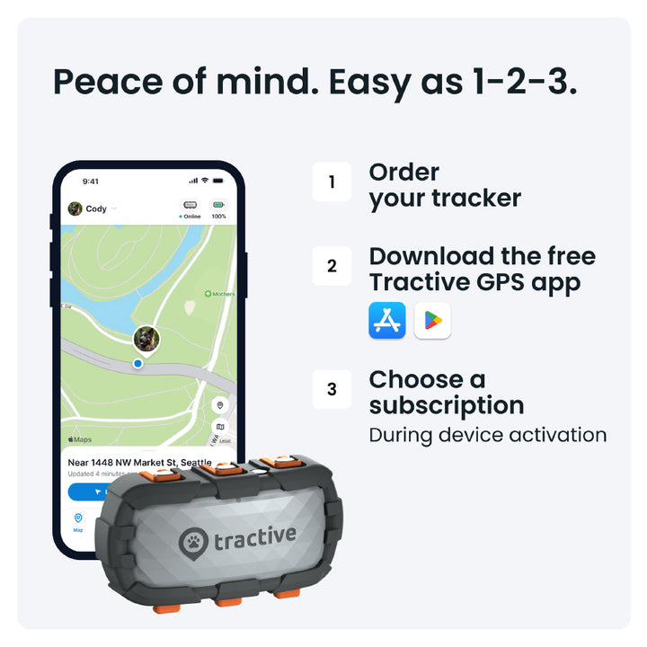 - Aplicație Tractive disponibilă pentru iOS și Android